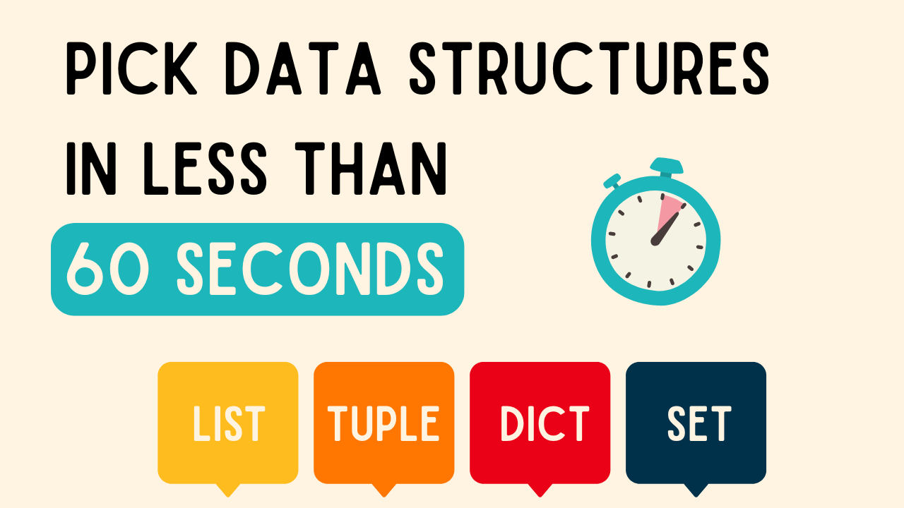 Learn how to choose the right Python data structure—lists, tuples, sets, or dictionaries—in under 60 seconds with simple examples and real-world use cases.