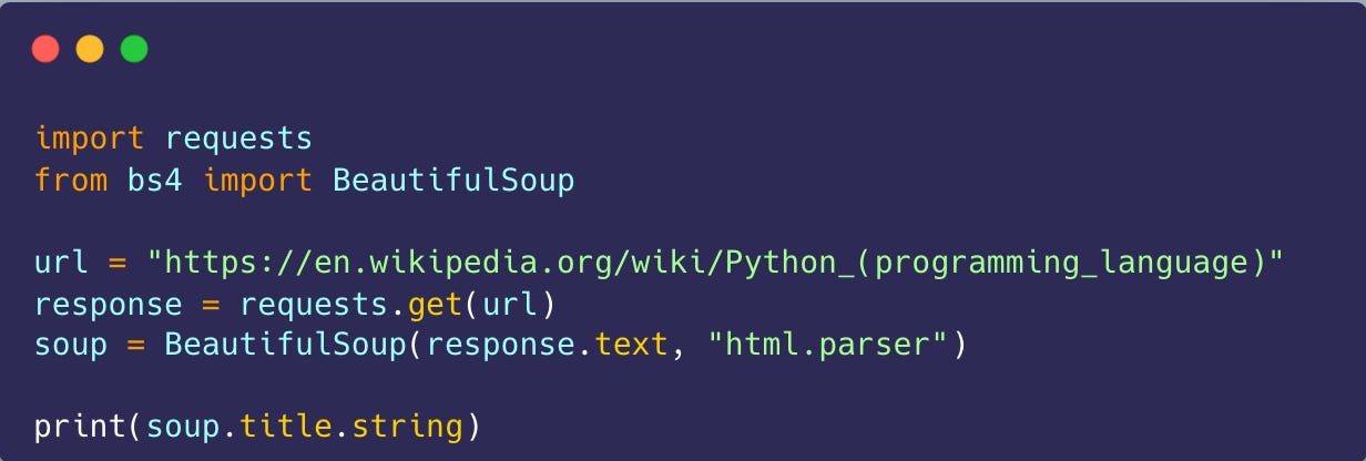 In just a few lines, you’ve grabbed the title of a webpage without ever opening a browser. Scale this up, and you can gather entire datasets from the internet—data that can later be used in analytics or machine learning projects.