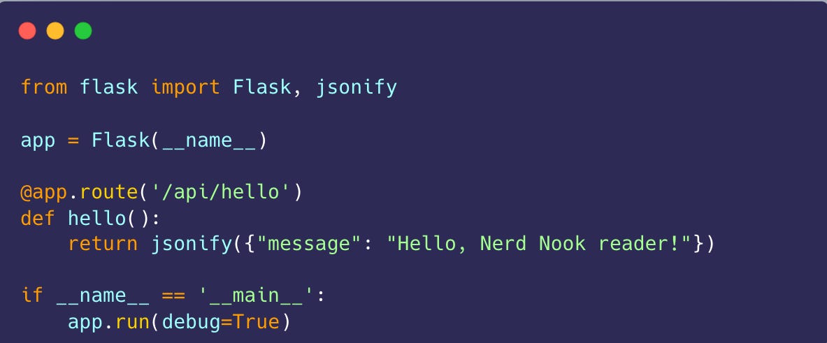 This tiny program creates a basic web app. When someone visits the right page, it replies with a simple message. From here, you could add databases, user logins, or even build an API that other developers can use in their own projects.