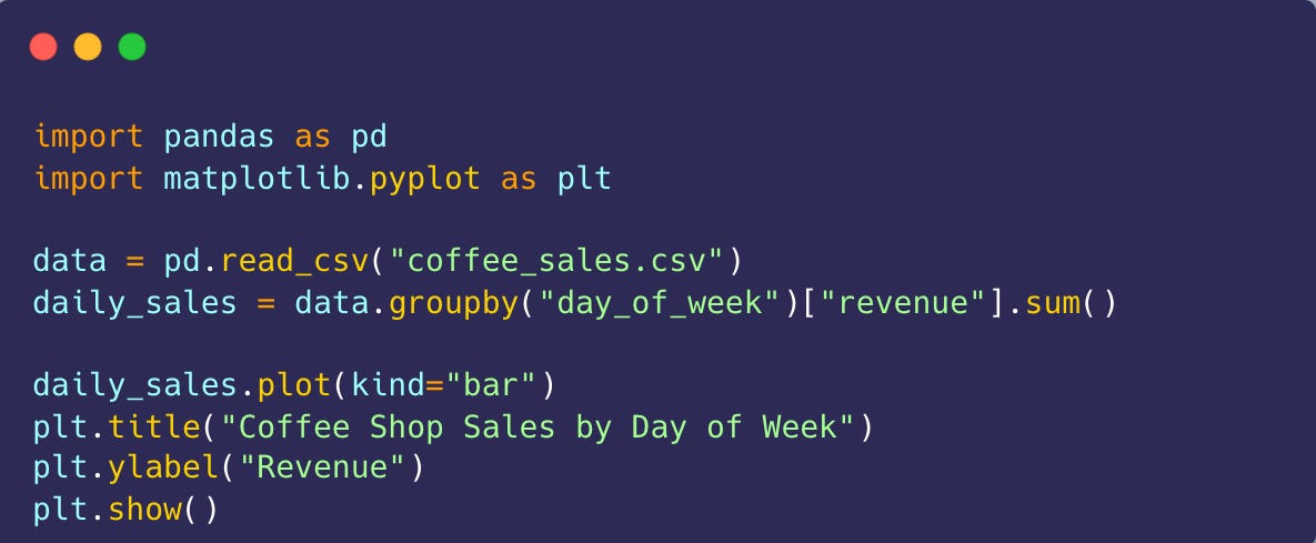 Python makes this process straightforward with libraries like Pandas, Matplotlib, and Plotly. For example, imagine you’re looking at sales data for a coffee shop. With just a few lines of code, you can spot trends: