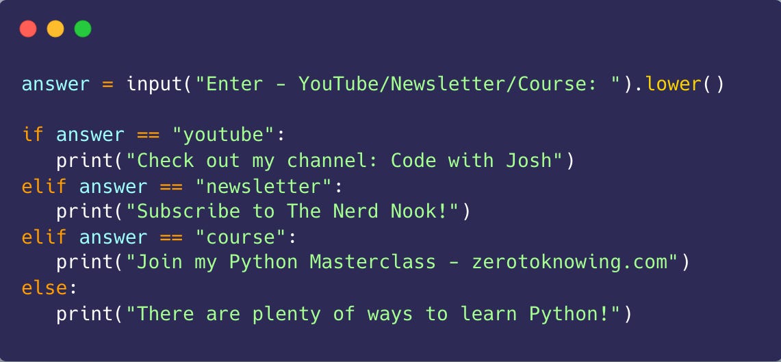 👉 If you’ve been enjoying these lessons, consider subscribing to the premium version. You’ll get full access to all my past and future articles, all the code examples, extra Python projects, and more.