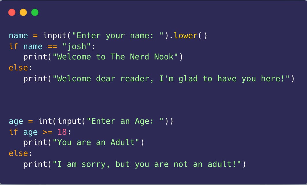Learn how to control your programs behavior by making decisions with conditions and conditional statements.