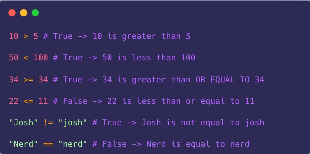 This article is just to get you understanding how expressions and conditions work as well as, what they are. As we progress in the Python Roadmap to Success we will uncover more gems and see how to put them into action.